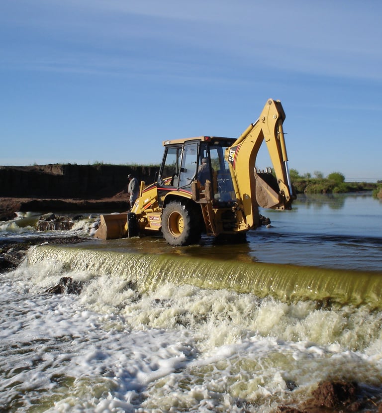 Ejecutamos obras civiles e industriales, como pavimentos, estructuras metálicas y de hormigón, muros de contención y desagües pluviales.